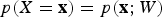 , where p is the value of the function (e.g. density of the ore deposit) and {x
