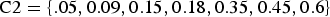 $\hbox{C}2 = \{.05, 0.09, 0.15, 0.18, 0.35, 0.45, 0.6\}$