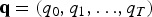 ${\bf q} = (q_{0}, q_{1},{\ldots},q_{T})$