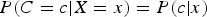 is the probability that the (realized) observation x is a class c event. (We shall at times use a short hand notation,