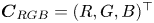 can be written as a three-dimensional vector $\boldsymbol {C}_{RGB} = (R, G, B)^{\top }$