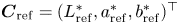as $\boldsymbol {C}_{\mathrm {out}} = (\hat {L}^{*}, m' a^{*}_{\mathrm {ref}}, m' b^{*}_{\mathrm {ref}})^{\top }$