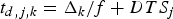 $$t_{d,j,k} -\left(t_{e,j} +{\Delta_k \over f}\right) = {c + \delta_k \over f}.$$