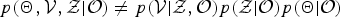 $$\eqalign{p({\cal O}, {\cal V}_{u}, \lcub {\cal V}_{\backslash u},{\cal Z}_{\backslash u}\rcub ) &= p({\cal O_{\backslash u}, {\cal V}_{\backslash u}, {\cal Z}_{\backslash u})} \sum_{z_u} p({\cal O}_{u},{\cal V}_{u}, z_{u}) \cr &\propto p({\cal O}_{\backslash u}, {\cal V}_{\backslash u}, {\cal Z}_{\backslash u}),}$$