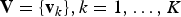 ${\bf V} = \{{\bf v}_{k}\}, k = 1, \ldots, K$