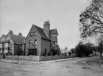Fig. 2. Nineteenth-century photograph of houses designed by E.W. Godwin and Coe & Robinson in Bedford Park (Harvard University, Henry Hobson Richardson Photograph Collection, vol. 218-7, seq. 34; courtesy Harvard Graduate School of Design, Frances Loeb Library)
