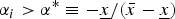 $\alpha _i \gt \alpha ^{\rm *} \equiv \displaystyle{{ - \underline{x}} / \lpar {\bar x - \underline{x}}\rpar } $.Footnote 7