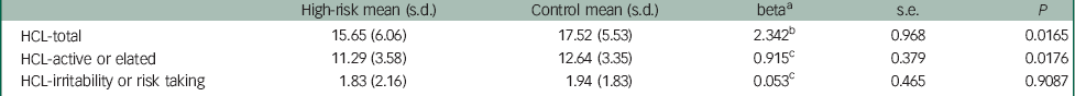 Table 4 HCL-32 total and subscale scores in high-risk and control offspring