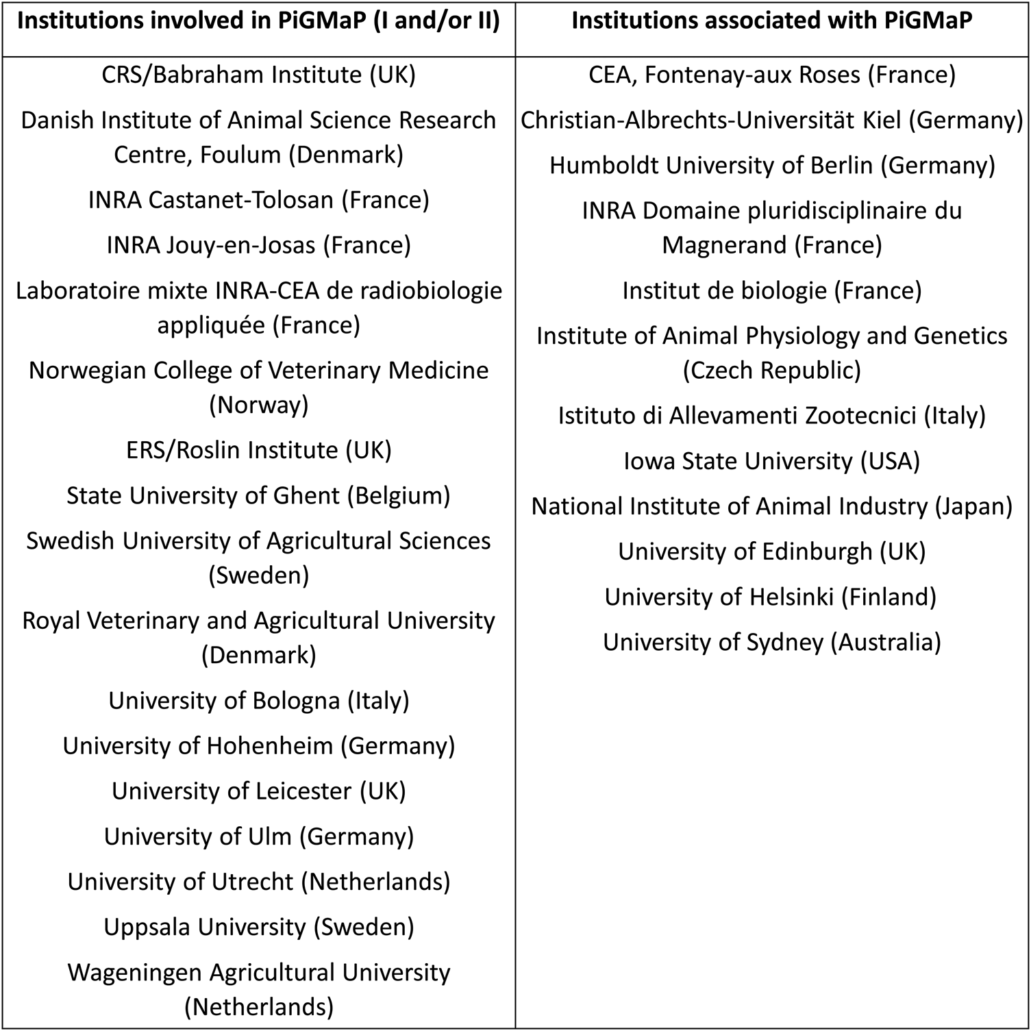 Figure 2. Institutions involved with PiGMaP. The left-hand column lists institutions that received EC funds as contractors. The right-hand column lists other institutions that contributed to publications produced by PiGMaP.