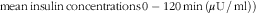 $${\rm mean}\,{\rm insulin}\,{\rm concentrations}\,0-{\rm 12}0\,{\rm min}\,({\rm \mu U}\,/\,{\rm ml}))} } $$