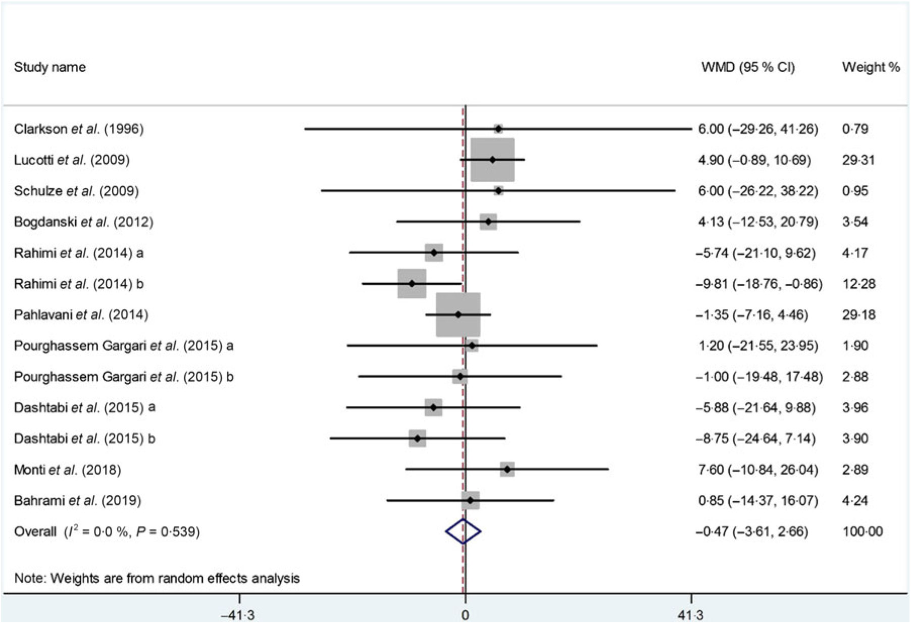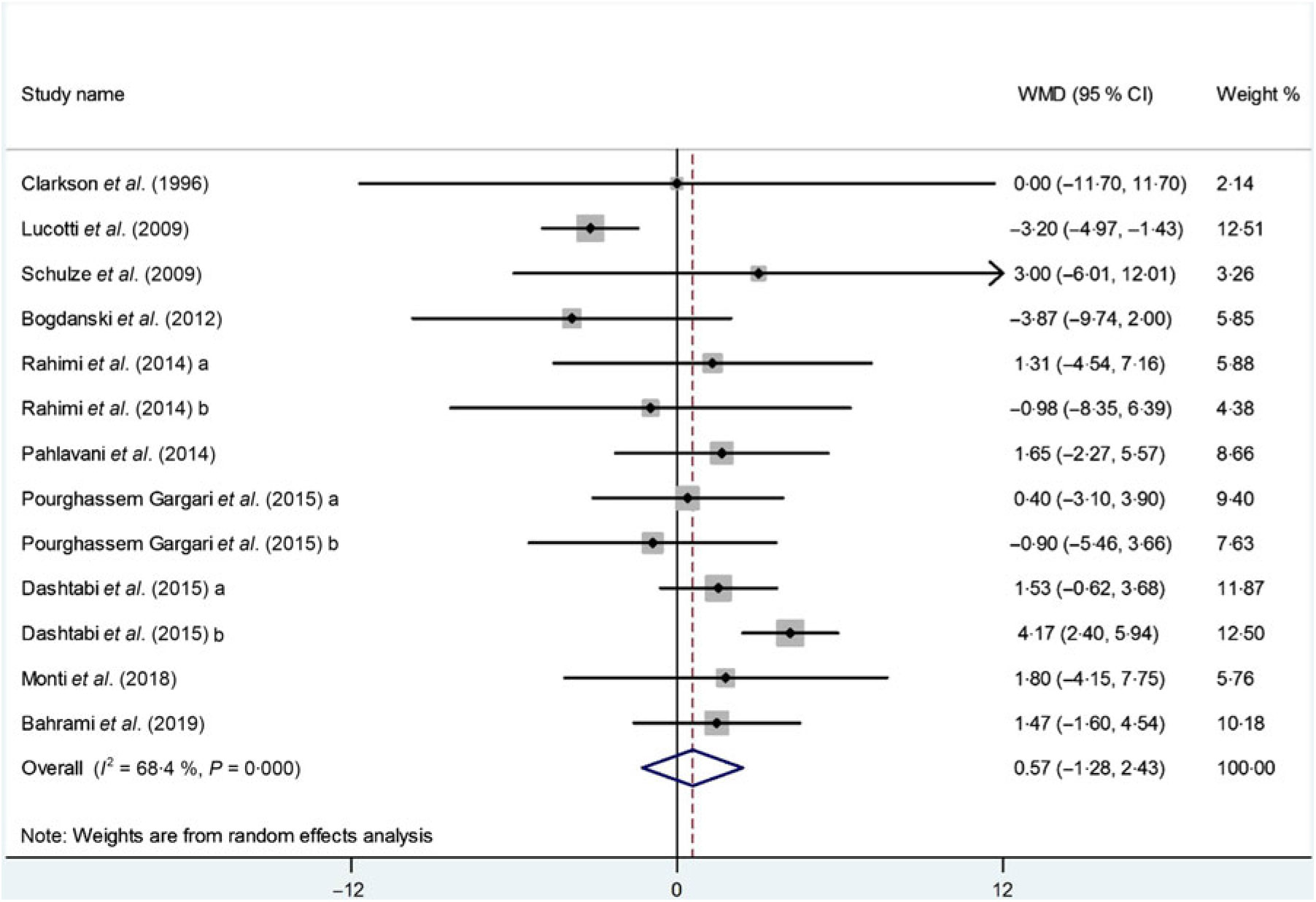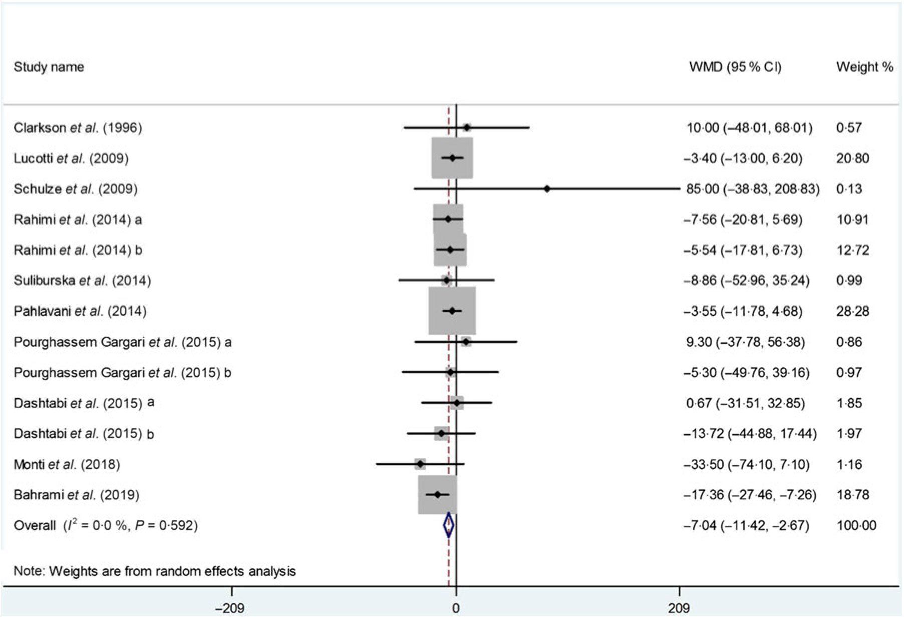Fig. 3. Forest plot of the effect of l-arginine supplementation on TAG. WMD, weighted mean difference.