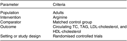 PICOS, participants, interventions, comparisons, outcomes and study design; TC, total cholesterol.