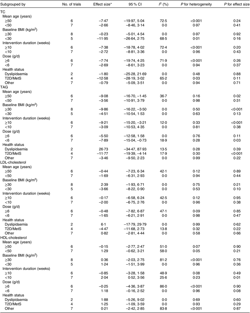 Although the visual inspection of funnel plots showed slight asymmetries, no significant publication bias was detected in the meta-analyses in the case of TC (Begg’s test, P = 0·54; Egger’s test, P = 0·45), TAG (Begg’s test, P = 0·54; Egger’s test, P = 0·56), LDL-cholesterol (Begg’s test, P = 0·39; Egger’s test, P = 0·80) or HDL-cholesterol (Begg’s test, P = 0·39; Egger’s test, P = 0·86).
