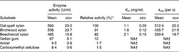 Table 2 Substrate specificity and kinetic constants for the recombinant xylanase