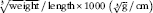 $$\root {^{3} } \of {{\rm weight}}/{\rm length} \left( {\root 3 \of {{\rm g}}/{\rm cm}} } \right)$$