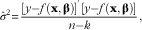 $\hat{\sigma }^{2} {\equals}{{\left[ {y{\minus}f({\bf x},{\bf \bbeta })} \right]^{\prime} \left[ {y{\minus}f({\bf x},{\bf \bbeta })} \right]} \over {n{\minus}k}},$