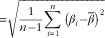 $${\equals}\sqrt {{1 \over {n{\minus}1}}\mathop{\sum}\limits_{i{\equals}1}^n {\left( {\beta _{i} {\minus}\bar{\beta }} \right)} ^{2} } $$