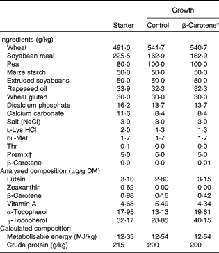 Table 1 Ingredients and analysed or calculated compositions of chicken starter (0–3 weeks) and growth (3 and 9 weeks) diets