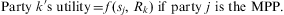 13 Thus, if the sk 's are ordered so that s 1 ≤ s 2 ≤ … ≤ sK , then the MPP is that party kM such that parties 1,…,kM and parties kM , kM + 1,…K each include a majority of the seats in parliament.