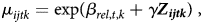 $$\Pr ( {Y_{ijtk} = y_{ijtk}\;\vert \;\mu_{ijtk}} ) = \displaystyle{{e^{-\mu _{ijtk}}\mu _{ijtk}^{y_{ijtk}} } \over {y_{ijtk}!}}$$and: