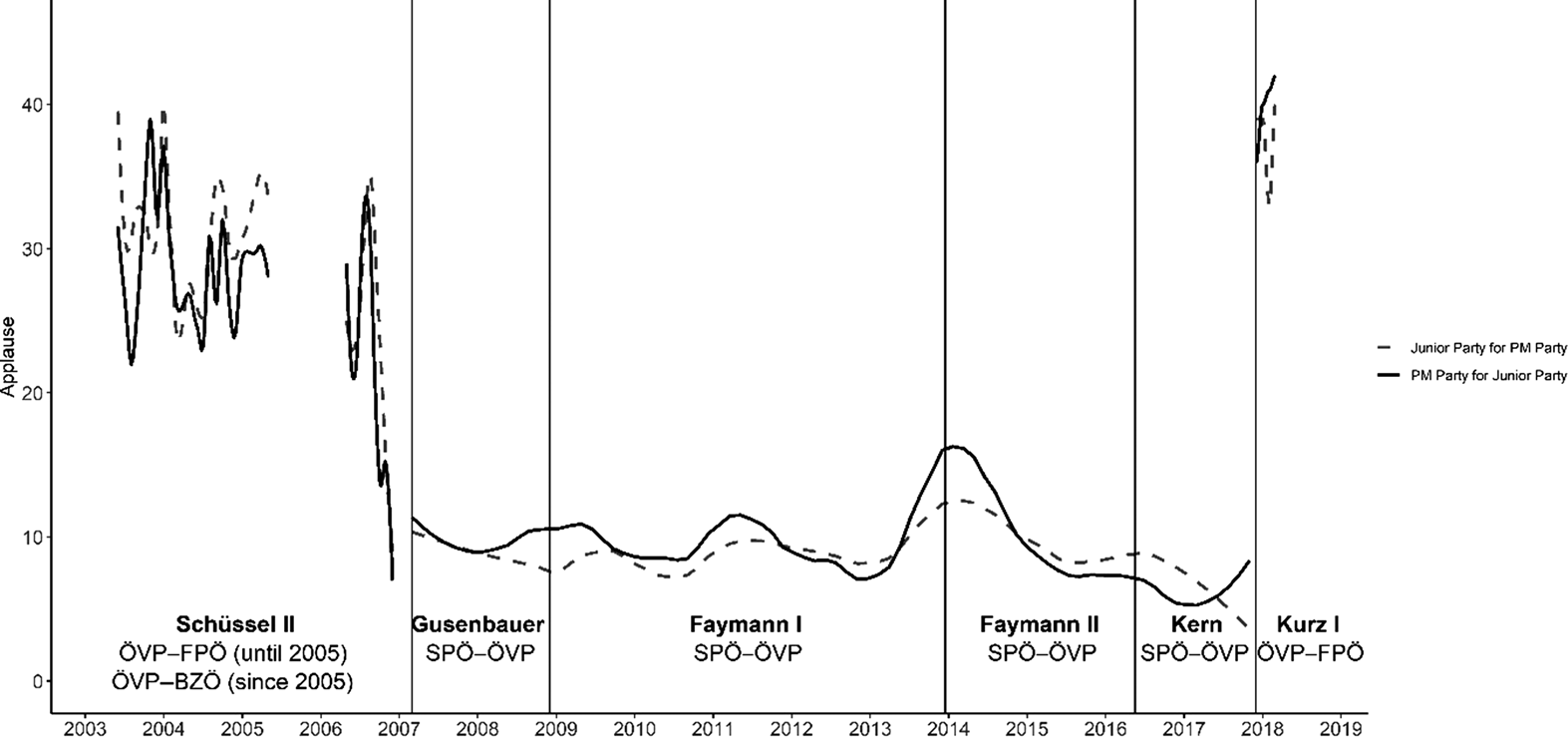 Fig. 2. Applause between government parties in Austria, 2003–18.