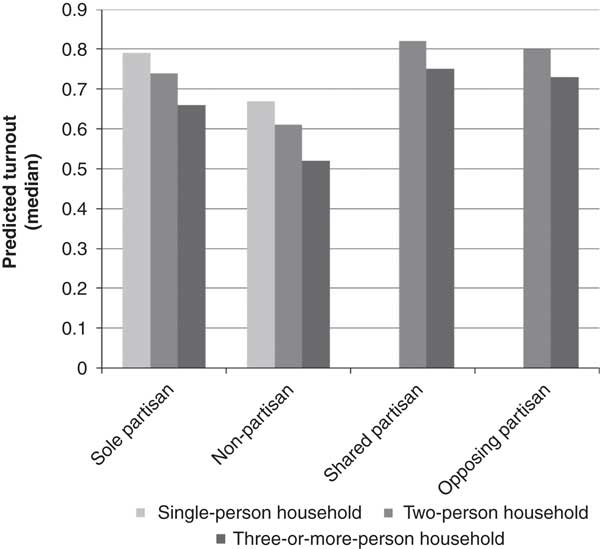 Hypothesis 2: Citizens who share a party identification with other members of their household will be more likely to vote than those who are the only party identifier in the household, or those whose fellow household members identify with a different party.
