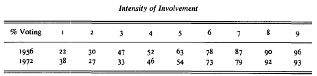 Our indexing procedure produces a variable that relates to turnout very much in the same way that the American Voter index did in 1956: