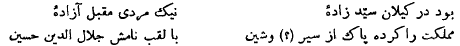 page 525 note 1 Qāsim al-anvār, who lived in 757–837/1356–1433 and was closely connected with the Safavid family, tells in one of his poems (Bib. Nat., suppl. persan 707, f. 208b) a story about the sipahbad of Gilan Jalāl al-dīn Ḥusayn who was issued from a sayyid family and whose throne (takht) was in Astārā.![]()