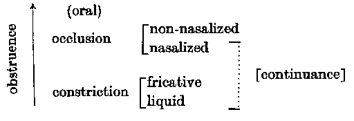 The scale of ‘ obstruence ’ provides a measure of the distinction between ‘ occlusion ’ and ‘ constriction ’ (viz. maximal: non-maximal oral obstruence) and between the sub-categories within each of these.