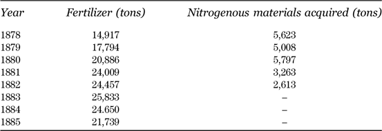 Table 1 Percentage of Receipts of Nitrogen-Rich Materials, 1872–1882