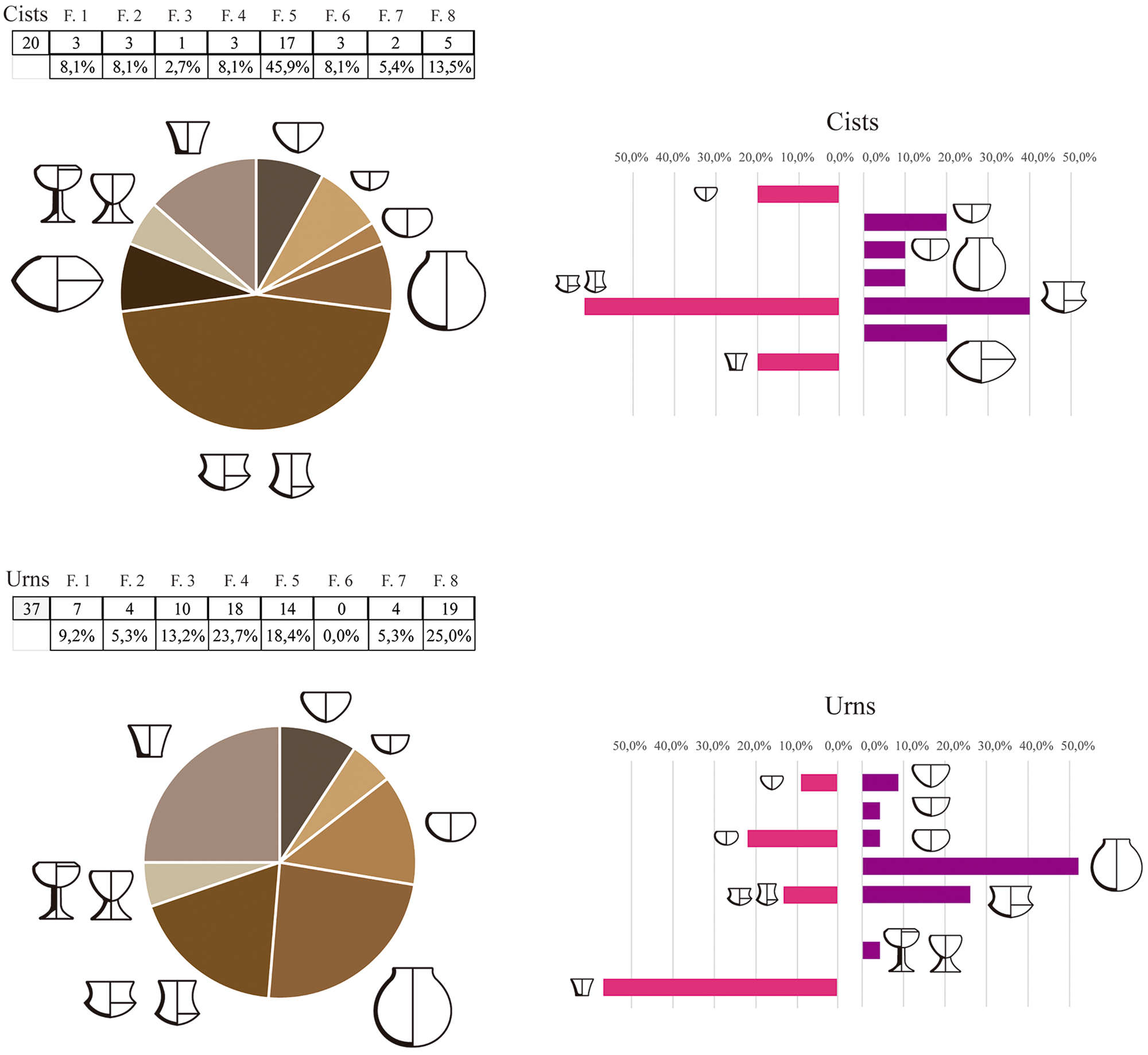 Figure 4. Percentage distributions of ceramic types found in the cist and urn analysed burials.