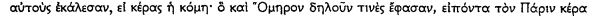 ). Herodian, however, seems to have allowed the use in Homer (2. 75, 23–4 Lentz, cf.Σ Townl., Σ d, e1, e2 Erbse ad Λ 385), and Pollux (loc. cit.) keeps an open mind: ![]()