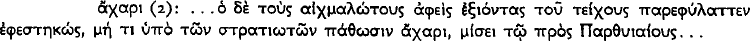 Page 35 note 4  As L. Pearson writes (op. cit. p. 450 n. 91), ‘The resemblance to Arrian's Version is clear despite the distortion (de cetero seems to be a misunderstanding of  )'. The epigram non solum regi te sed etiam tuo is presumably Curtius’ own: there is no sign of it in Arrian at all events.