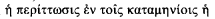 referred to here as being in the catamenia must be the semen, and not the female fluid itself, for two reasons, (i) This sentence supplements the statement at 767b10–13 just before about what causes a female birth, by stating the cause of the contrasting male birth. Since the female birth was said there to be caused by a defect in the hotness of the semen, we need a reference here to the well-concoctedness, and so hotness, of the semen as what causes the male birth.(ii) In the following sentence Aristotle makes a remark about the equivalency of speaking in such contexts of either the semen (γονή) or the movement (in it), and the relevance of that remark here is heightened by, if it does not actually require, a reference to the semen in the first part of this sentence. Read that way, Aristotle does precisely begin by speaking at 767b15 of the well-concoctedness of the semen only to conclude by saying (bl7–18) what, when it is well concocted, the movement of the male will effect; the remark at b18–20 is then fully in place, as indicating that no gap has in fact been left open in the explanation just given between the semen (and its features) and the formative movements. I have been unable to find any exact parallel for the expression ![]()