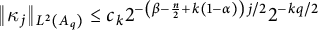 $$ \begin{align} \int_{|x|\geq 1}|\kappa(x)|\varphi _{-i\eta _{\Gamma }}(x)^{s(p)}dx& =\sum_{j\geq 1}\int_{B_{j+1}\backslash B_{j}}|\kappa(x)|\varphi _{-i\eta _{\Gamma }}(x)^{s(p)}dx\nonumber\\ &:=\sum_{j\geq 1} I_j. \end{align} $$