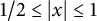 $1/2\leq |x|\leq 1$