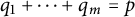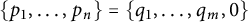 $\{p_1,\ldots ,p_n\} = \{q_1,\ldots ,q_m,0\}$
