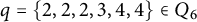 $q = \{2,2,2,3,4,4\} \in Q_6$