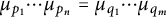 $\mu _{p_1}\cdots \mu _{p_n} = \mu _{q_1}\cdots \mu _{q_m}$