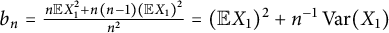 $b_n = \frac {n\mathbb {E} X_1^2 + n(n-1)(\mathbb {E} X_1)^2}{n^2} = (\mathbb {E} X_1)^2 + n^{-1} \operatorname {\mathrm {Var}}(X_1)$