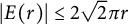 $\left \vert E(r)\right \vert \le 2\sqrt {2}\pi r$
