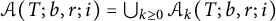 $\mathcal {A}(T; b, r; i) = \bigcup _{k \ge 0} \mathcal {A}_k(T; b, r; i)$
