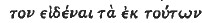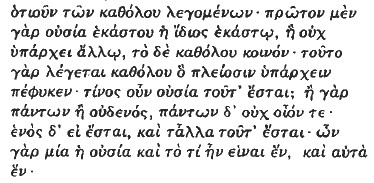 Owens also misdescribes the arguments of the aporia. On 999b24–7 he says: ‘If the unity in the principles sought by Wisdom is specific, nothing will be singular, not even the highest so-called genera, Being and the “one”. But then there can be no scientific knowledge; for scientific knowledge requires a specific unity in singulars’ (246). What Aristotle says is that if nothing is one in number, ![]()