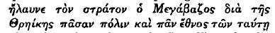 and what Herodotus elsewnere (5. 2 and 16) says about the range of Megabazus' conquests. In the former passage he writes: ![]()