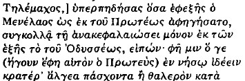 in Od. 17.142? Bérard, (op. cit. iii. 229) tells us with supreme confidence that ‘Eustathe nous donne le texte vrai … ’ However, whether or not this is the ‘texte vrai’, it is not exactly what Eustathius ‘nous donne’. The extraordinary note in Eustathius (1813. 16–20) on Od. 17.142 must be quoted in full: ![]()