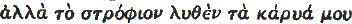 10 Apart from Ach. 479 and 1096, there are two other such references in Aristophanes, both of which use expressions meaning ‘roll me inside’: Knights 1249 (![]()