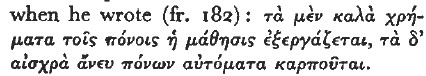 page 79 note 3 In a different context Solon (1.41–62 D.3) details the various crafts to which penury drives men, as Professor Dover reminds me. His comment is (63–64):