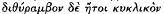 werden als Synonyme gebraucht’ (Zimmermann, p. 25). Cf. Pickard-Cambridge (DTC, p. 32): ‘The name "circular chorus”, which always means dithyramb, was probably derived from the dancers being arranged in a circle, instead of in rectangular formation as dramatic choruses were.’ As these quotations show, commentators recognize that the synonymity was functional, but not semantic.