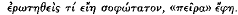 68 Alternatively ‘It looked like a rope and emitted many “s"s, but was not a snake: what was it?’ (Answer: a dithyramb). I propose a Greek version exempli gratia: ![]()