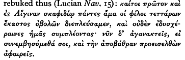 page 77 note 1 The zeugma will disappear entirely if we take tulit as ‘he obtained’, ‘he got for his money’: ‘what he obtained (sc. for his fare) was not steerage, but first-class accommodation’